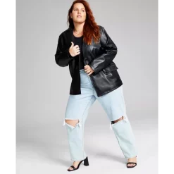 Best Pirce ๐ And Now This Trendy Plus Size Long Faux-Leather Blazer Brownie โค๏ธ