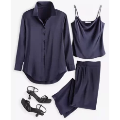Best Sale ๐ And Now This ๐ฉ Women’s Satin ๐ Shirt, Camisole & Wide-Leg Pants Cream ๐ฅฐ