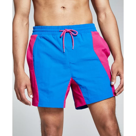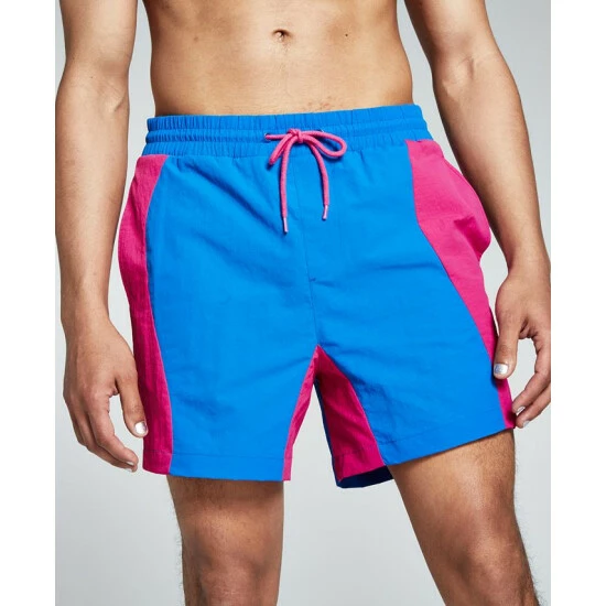 Make your poolside style pop with the bold colorblocking of these comfortable swim trunks from And Now This.