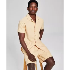 Perfect your relaxed look with the comfortable fit and laid-back camp collar of this stylish shirt from And Now This.