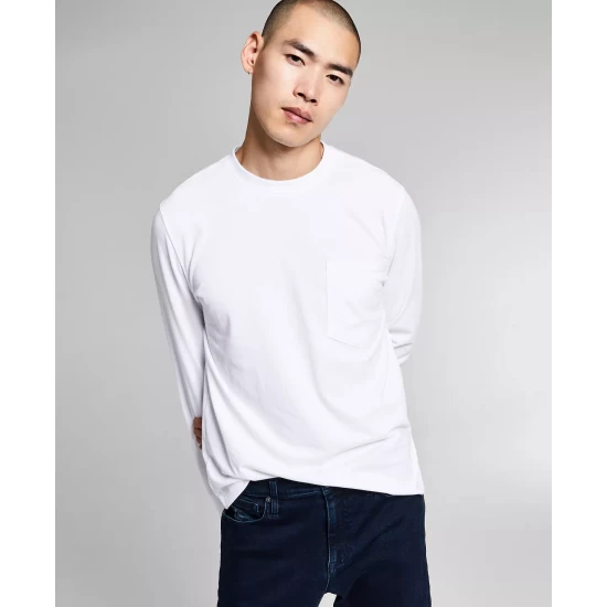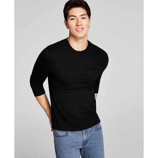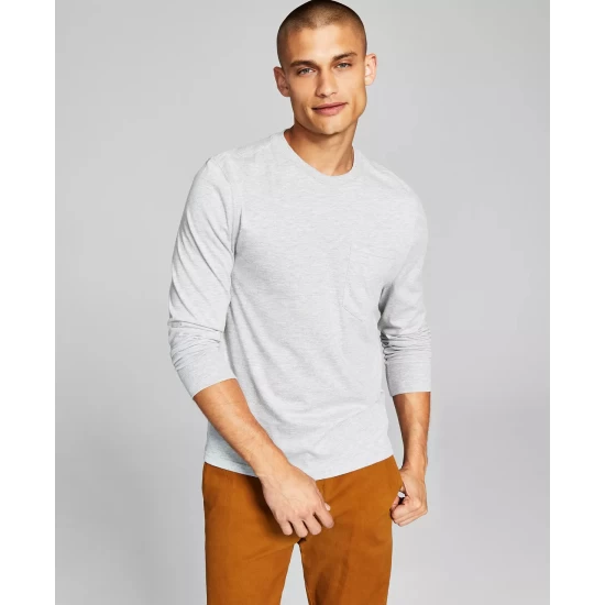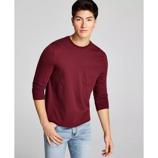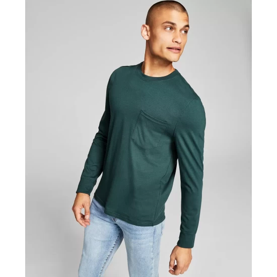 Update your casual essentials with the classic crewneck, chest pocket and super-soft feel of this solid long-sleeve t-shirt from And Now This.
