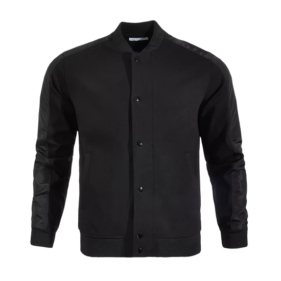And Now This presents a new classic with the raglan-look contrast trim sleeves of this handsome and versatile bomber jacket.