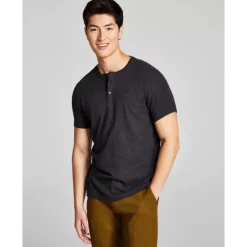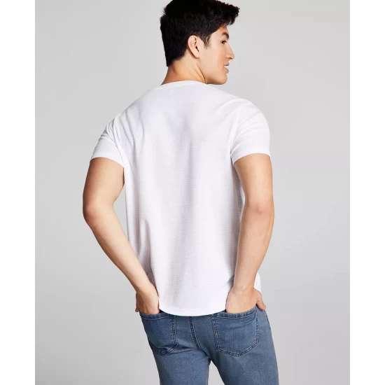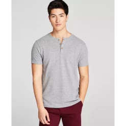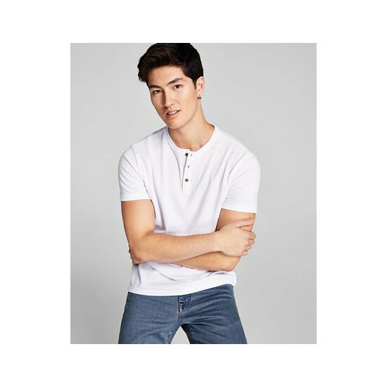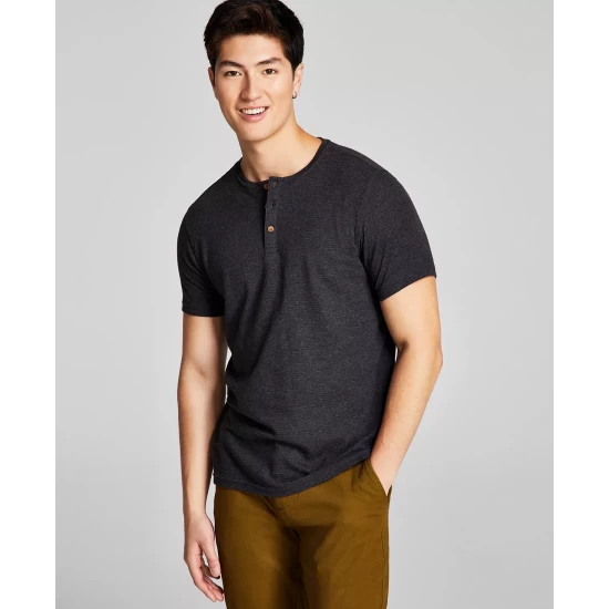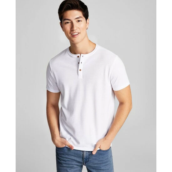 Display a supremely casual-cool look in absolute comfort with the soft, lightweight jersey and horizontal ribbed Henley body of this short-sleeve And Now This shirt.