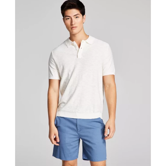 Dress up your casual styling game with the soft knit cotton and sweater-like fabrication of this short-sleeve polo shirt by And Now This.