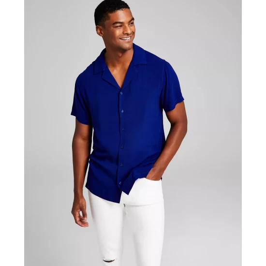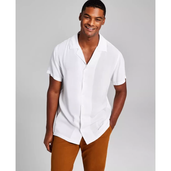 Reflect a more vacation-minded look with the classic camp collar and soft feel of this solid short-sleeve button-up shirt by And Now This.