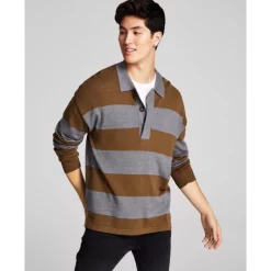 And Now This translates iconic rugby style into cool weather fashion with the long-sleeves and sweater body of this striped polo shirt.