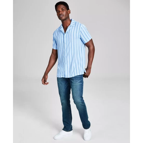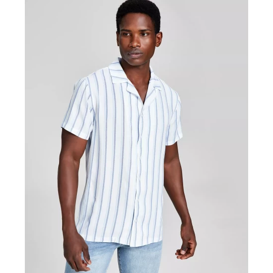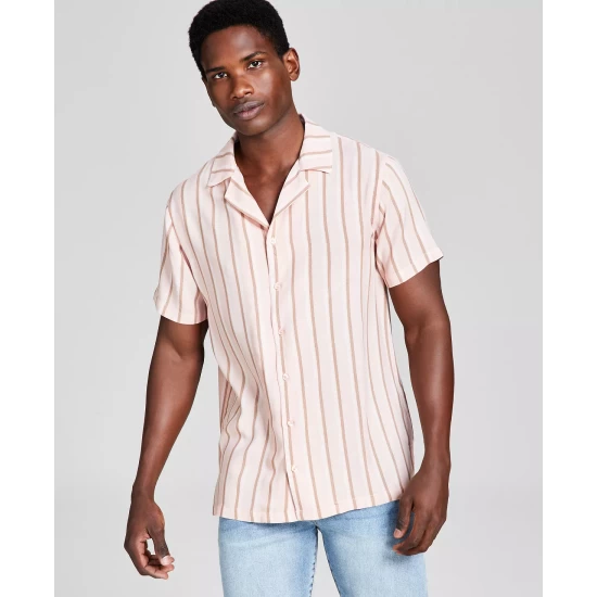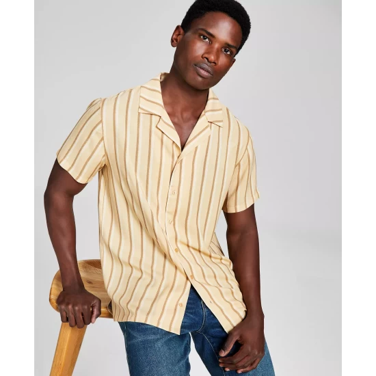 For an effortless casual style, reach for this short sleeve camp shirt by And Now This. Its camp collar, supremely soft weave fabrication and striped body exude a welcoming, laid-back vibe.