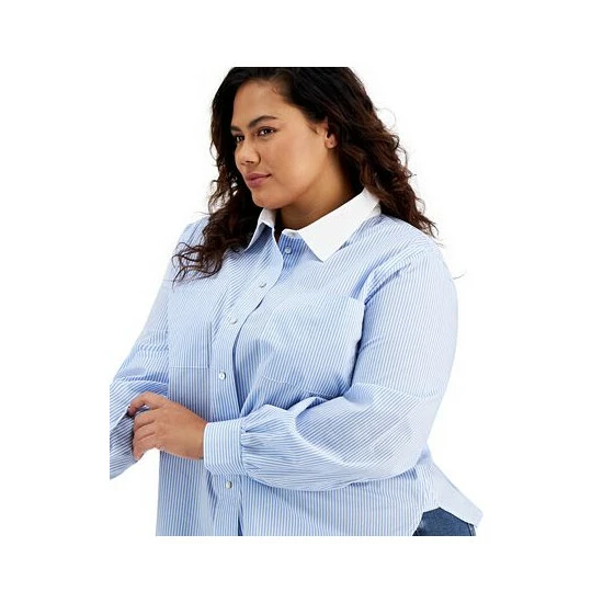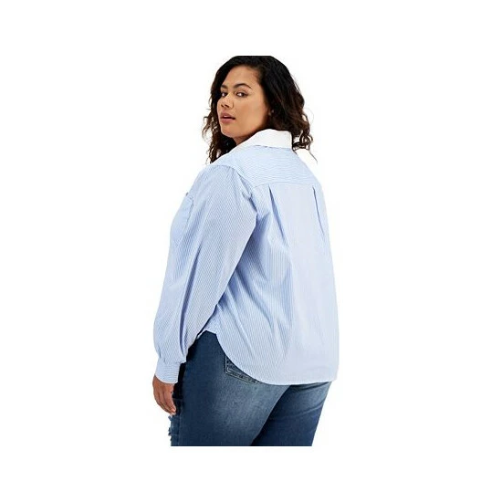 Crisp stripes and a shirt collar make this plus size cotton shirt from And Now This a classic choice, whether you wear it buttoned all the way or tied at the front.