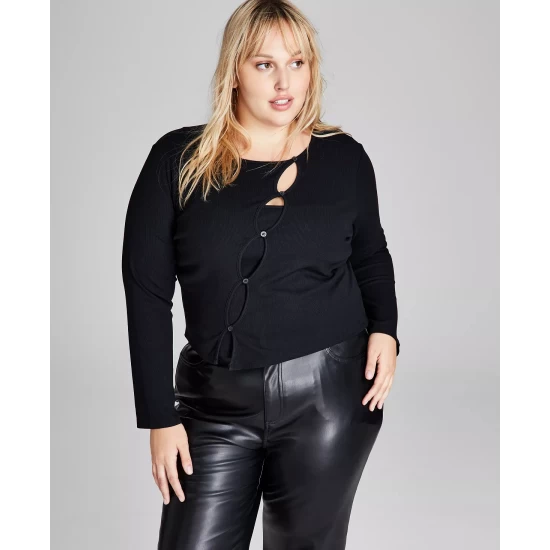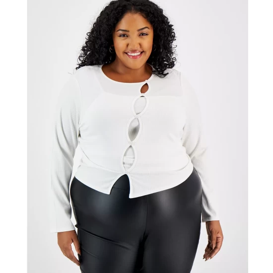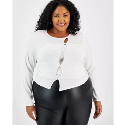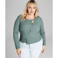 Show off a hint of skin in And Now This’ plus size top, a long sleeve design detailed with cool cutouts at the front.