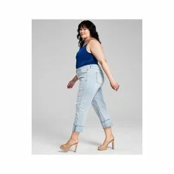 Turn up the hem on these plus size jeans from And Now This, a straight-leg pair designed with ripped knees.