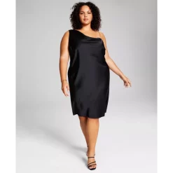 A single chain strap is paired with an asymmetric cowl neckline on this gorgeous plus size slip dress from And Now This.