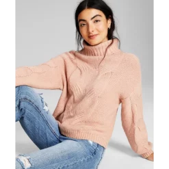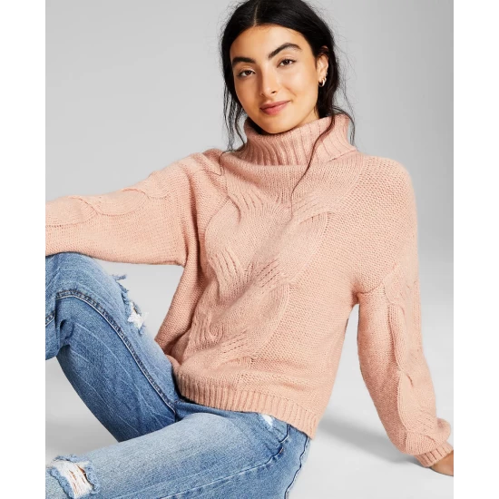 Take on this cozy style in this cable-knit sweater from And Now This. Designed with a turtleneck and roomy puff sleeves.