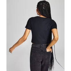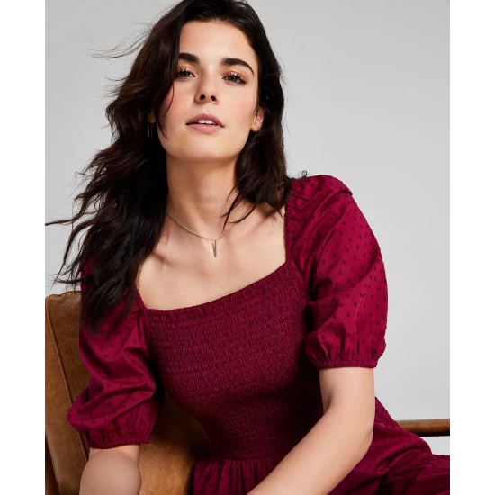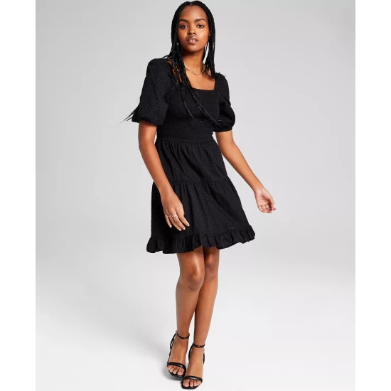 Romantic sleeves frame this women’s dress from And Now This, sweetly ruffled and finished in a charming clip-dot design.