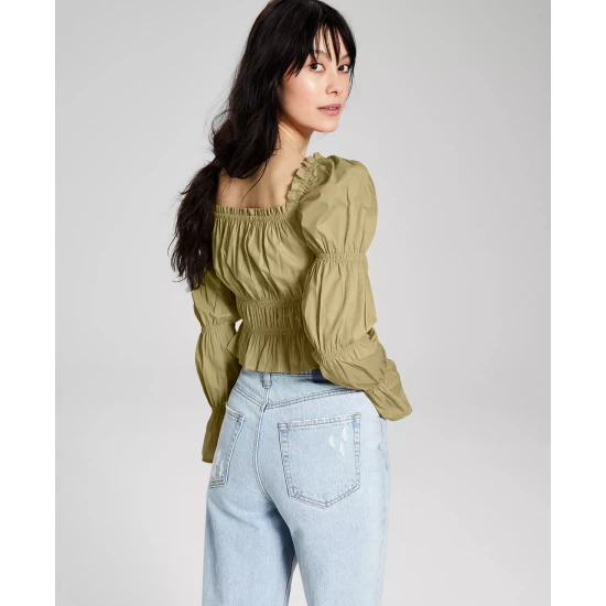 Plenty of ruched detail lends added dimension to this cropped cotton top from And Now This, complete with puff sleeves for a style win.