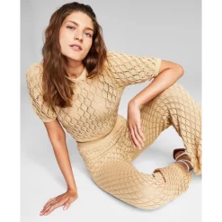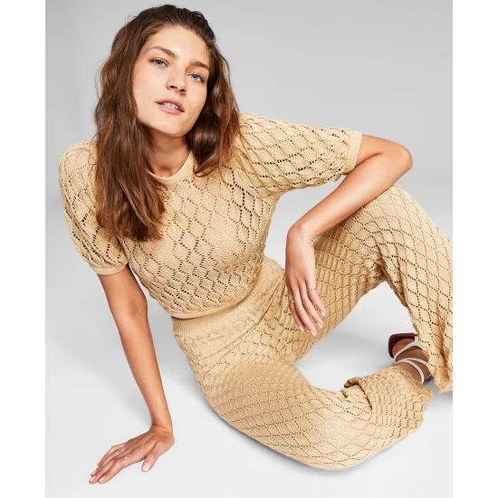 And Now This puts fashion in focus with these flare-leg pants designed entirely with gorgeous crochet detail.