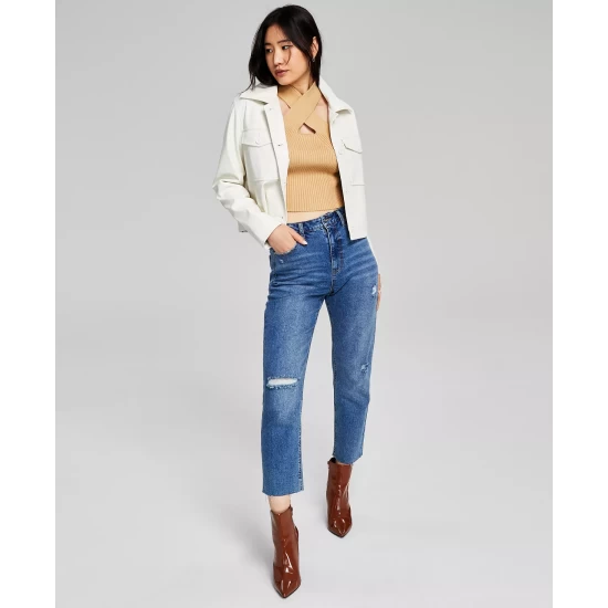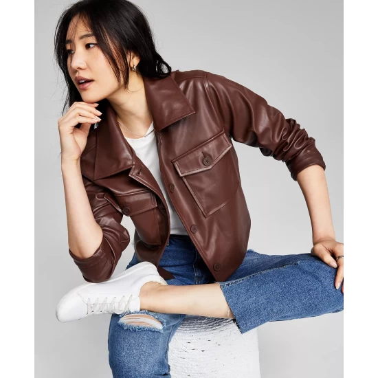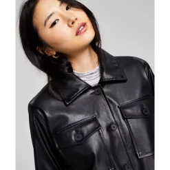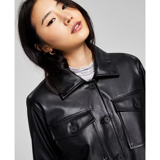 And Now This adds an edgy layer to your wardrobe with this cropped faux-leather jacket.