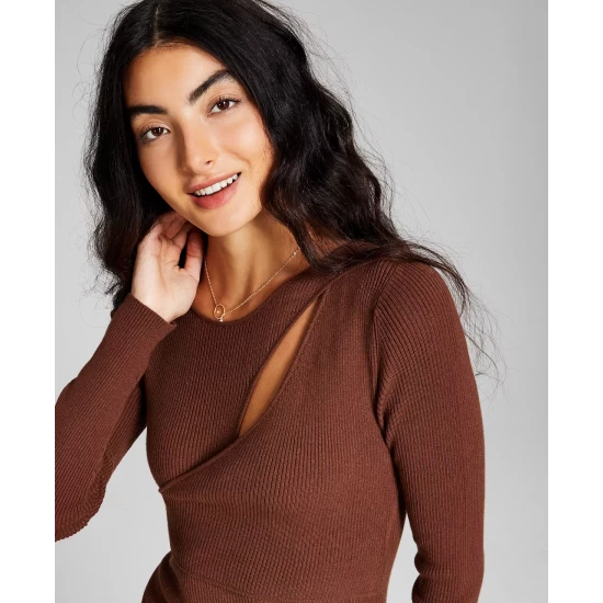 A cutout at the front brings compliment-worthy style to this long-sleeve sweater dress from And Now This.