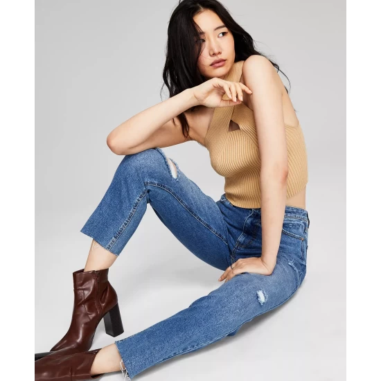 A chic halter neckline brings polish to this women’s dress from And Now This, dress it up or down for any occasion.