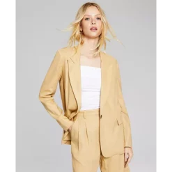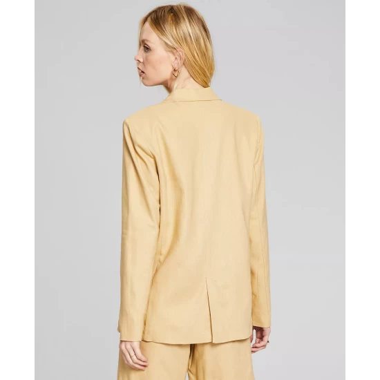 And Now This updates your workwear wardrobe with this chic linen-blend blazer, a modern oversized design that closes at the waist with a single button.