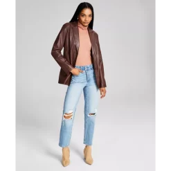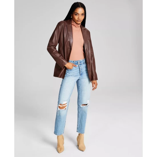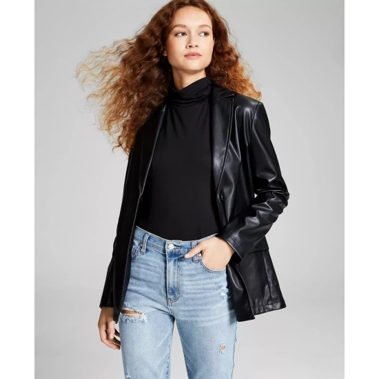 Give any look an eternally cool finish with this oversized blazer from And Now This designed in sleek faux leather.