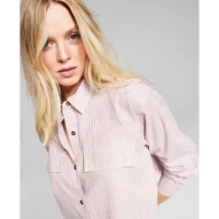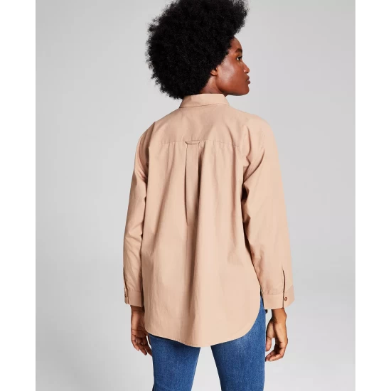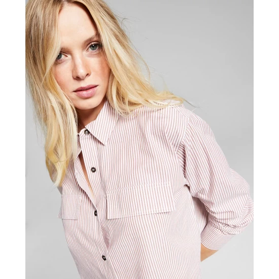 An updated version of the button-up, this fresh new style from And Now This features a cute cropped fit in cotton poplin.