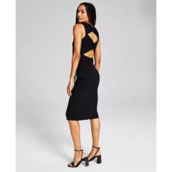 Knotted details and cutouts at back update this ribbed-knit midi dress from And Now This.