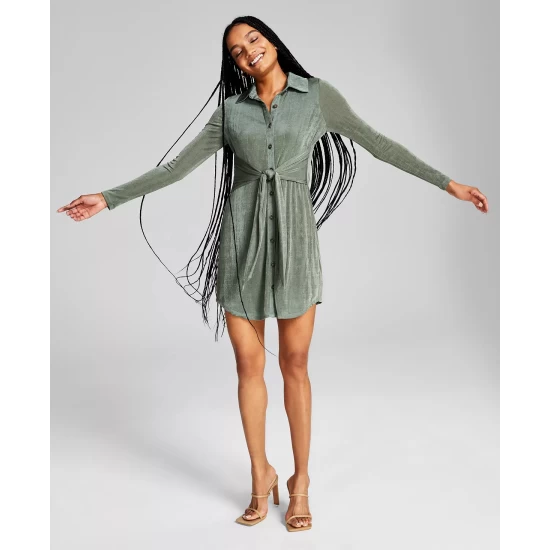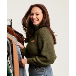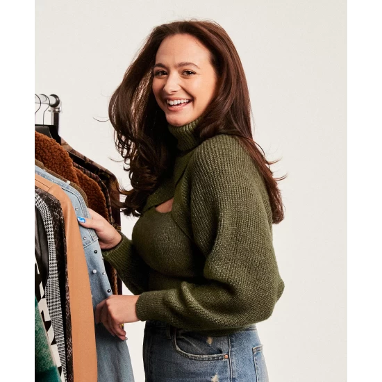 Shimmery knit sheen in a pair of matching pieces: a drapey turtleneck shrug layers over a snug tank top in this stylish two-piece set from And Now This.