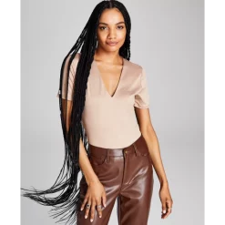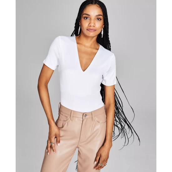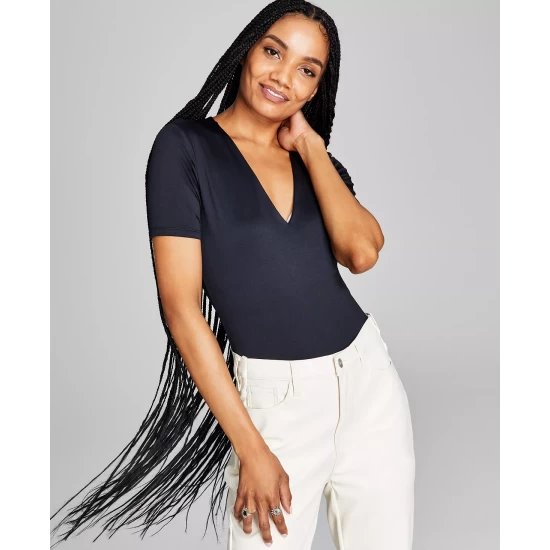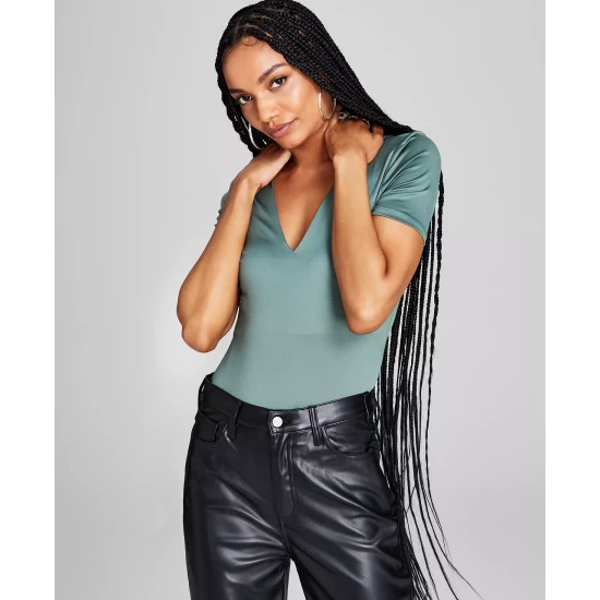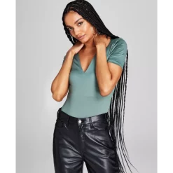 A sleek v-neck makes this women’s bodysuit from And Now This a perfect addition to your wardrobe.